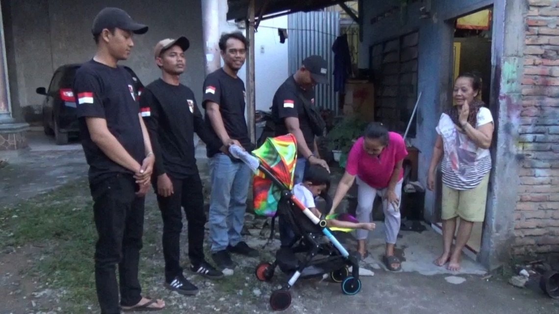 Medan, seputaranindonesia.com – Berlinang air mata kedua nenek dari Aska, saat menerima bantuan berupa Kursi Roda Anak (Stroller) dari Ketua Pimpinan Anak Cabang (PAC) Pemuda Pancasila (PP) Kecamatan Medan Denai, Guntur Syahputra yang diserahkan langsung oleh pengurus Anak Ranting 02 Pemuda Pancasila Kelurahan Denai Kecamatan Medan Denai Kota Medan.