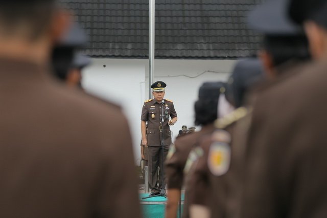 Upacara PHI juga diikuti Wakajati, para Asisten, Kabag TU, Koordinator, Kasi, Kasubag, jaksa senior dan para pegawai.