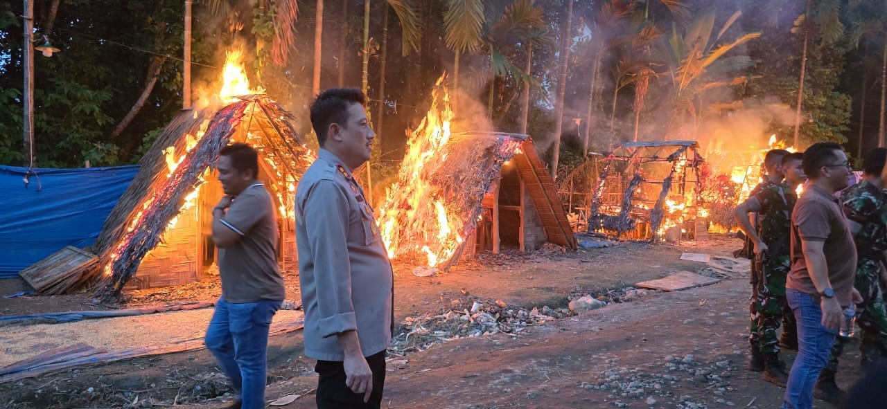 Tidak hanya itu, aparat juga menemukan dan menyita 16 mesin judi tembak ikan serta 240 mesin jackpot yang beroperasi di lokasi-lokasi tersebut. Sebagai tindakan tegas, semua barak yang digunakan sebagai sarang aktivitas ilegal langsung dimusnahkan dengan cara dibakar di tempat.