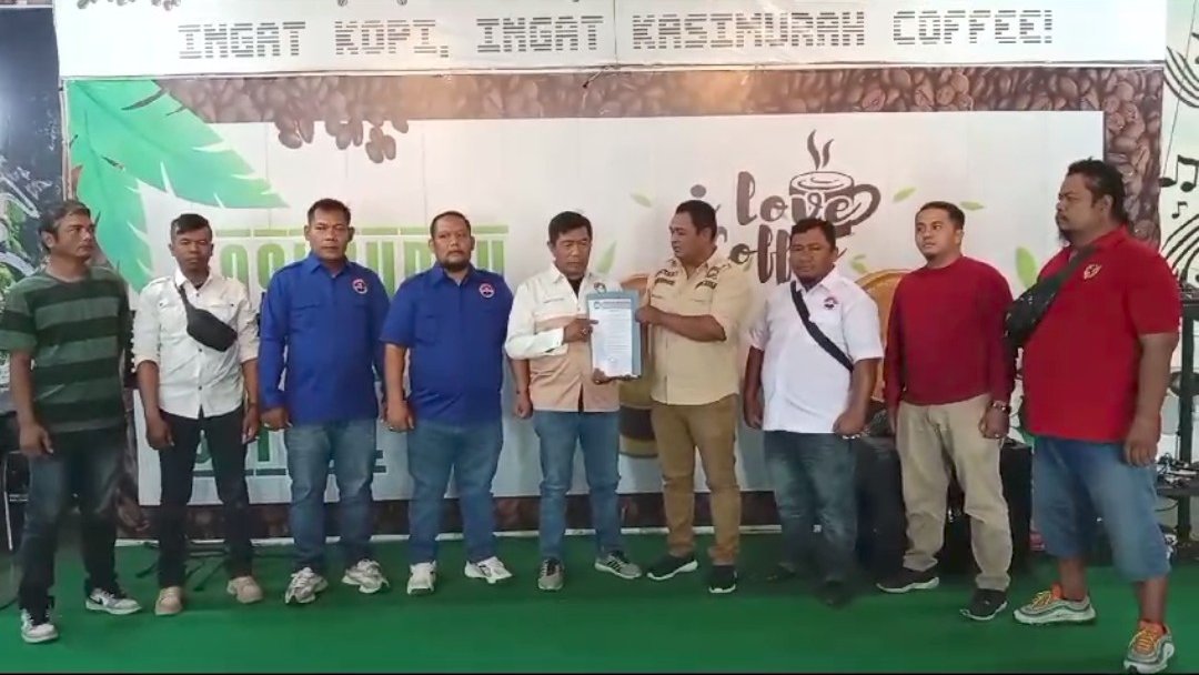 Hendra Yanto menyerahkan SK Relawan kepada Harry Muryanto Wendy di Kafe Kasimurah Coffee, Rabu (11/09/24), sore. (seputaranindonesia.com/Foto: Arya)