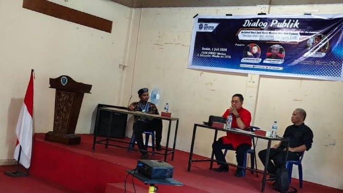 Medan, seputaranindonesia.com – Gerakan Mahasiswa Kristen Indonesia (GMKI) Kota Medan menggelar Dialog Publik yang berlangsung di Gedung Pusat Kegiatan Mahasiswa (PKM) GMKI Cabang Medan Jalan Iskandar Muda No.107 A, Kelurahan Sei Sikambing D, Kecamatan Medan Petisah, Kota Medan, Senin (01/07/2024) sore.